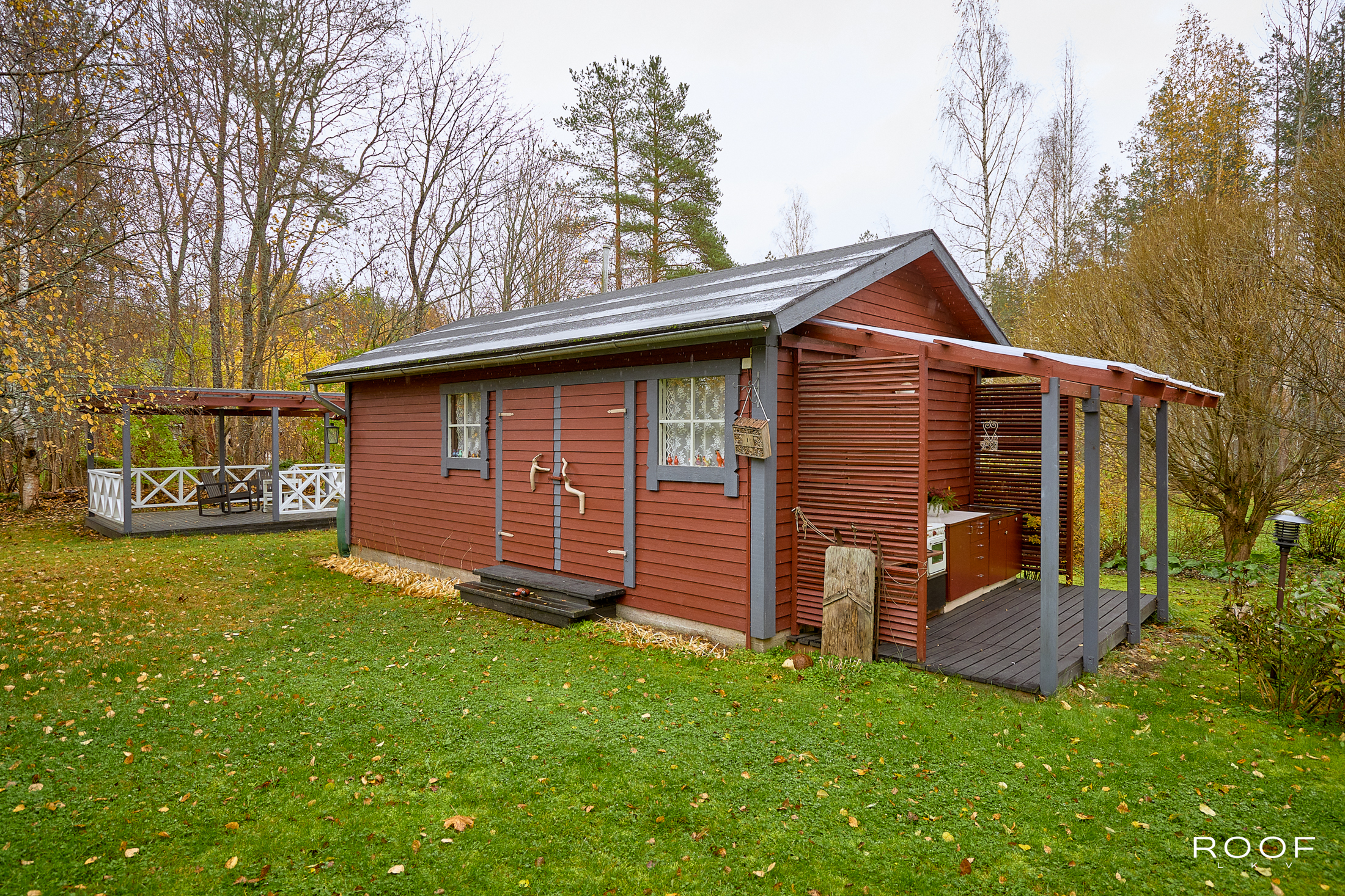 Päärakennuksen lisäksi pihapiirissä on varastorakennus, joka tarjoaa lisää makuutilaa ja säilytystilaa. Pihasauna ja viihtyisä kesäkeittiö täydentävät kokonaisuuden ja tuovat aidon mökkitunnelman.