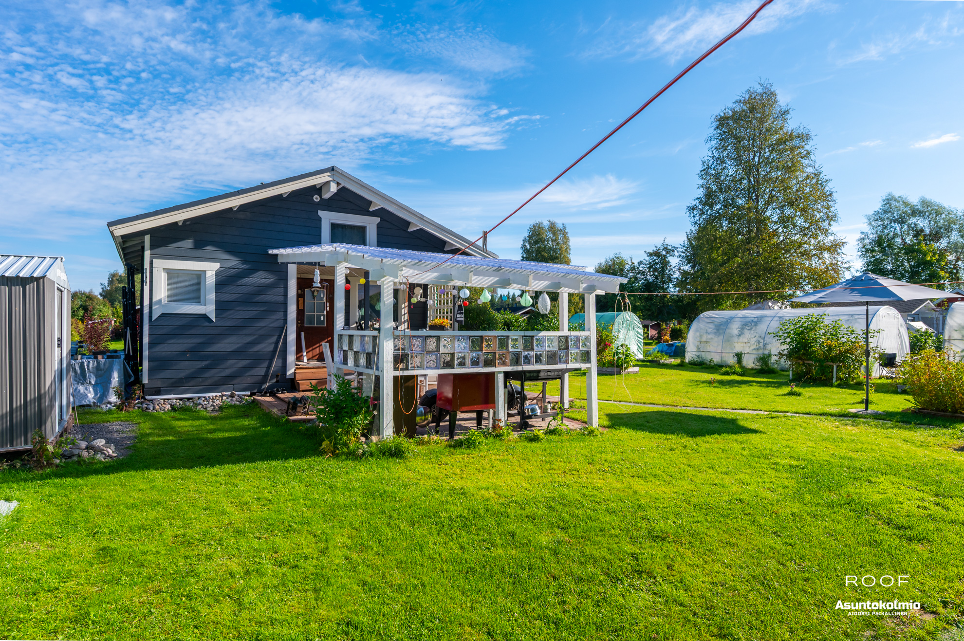 Syksyllä voit valmistella palstaa tulevaa kasvukautta varten: tehdä syyskylvöjä ja iloita keväällä aikaisesta sadosta. Katetulla terassilla aamukahvi maistuu lintujen laulua kuunnellen, ja kesäiset illat jatkuvat mukavasti perheen ja ystävien kanssa ulkosaunan löylyistä nauttien. 31 m²:n kokoinen hirsimökki on hyvässä kunnossa ja suunniteltu käytännö...