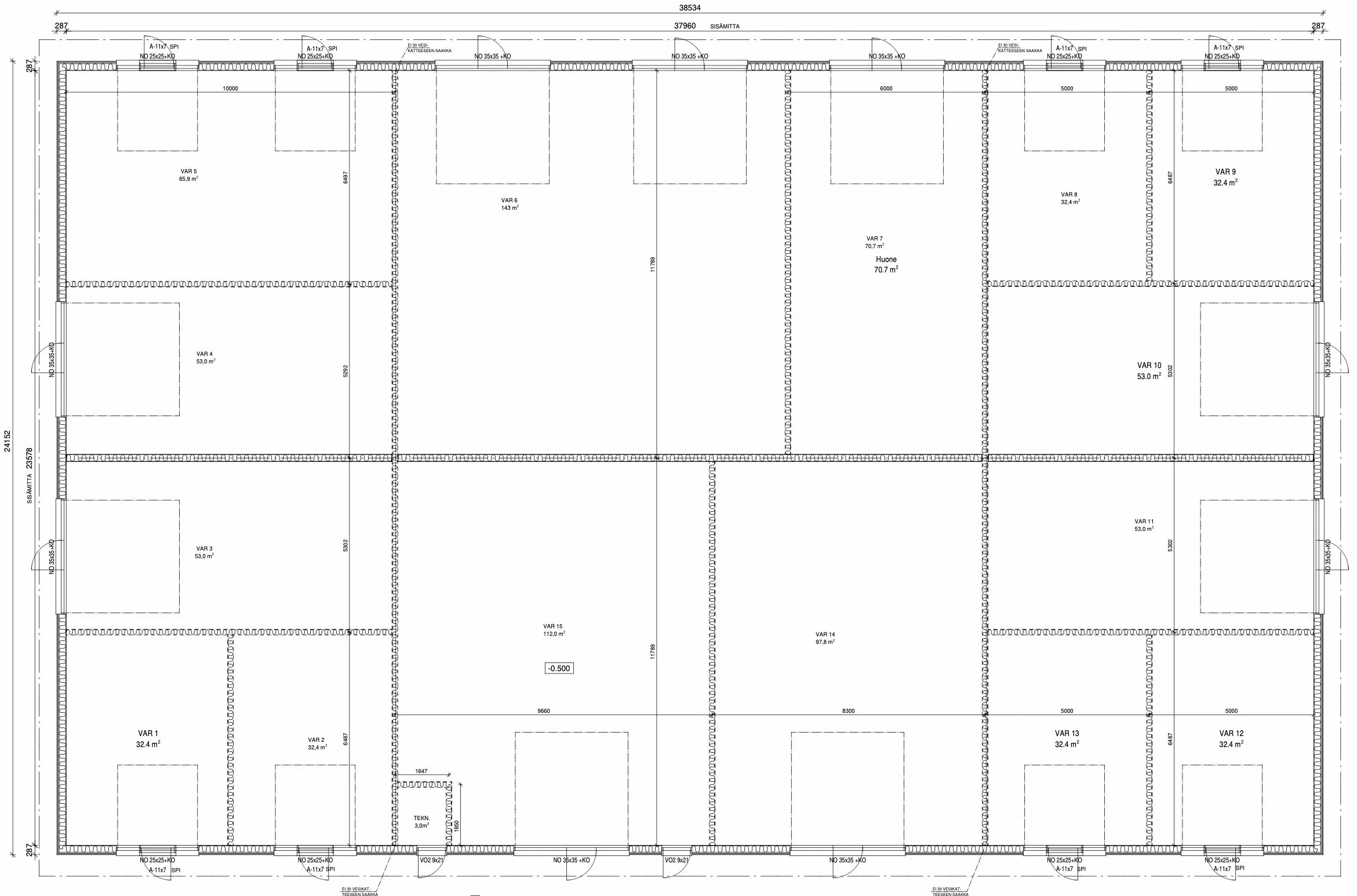 Huoneluku: Varasto 47,4 m2 (32,4 m2 + 15 m2 parvi)
