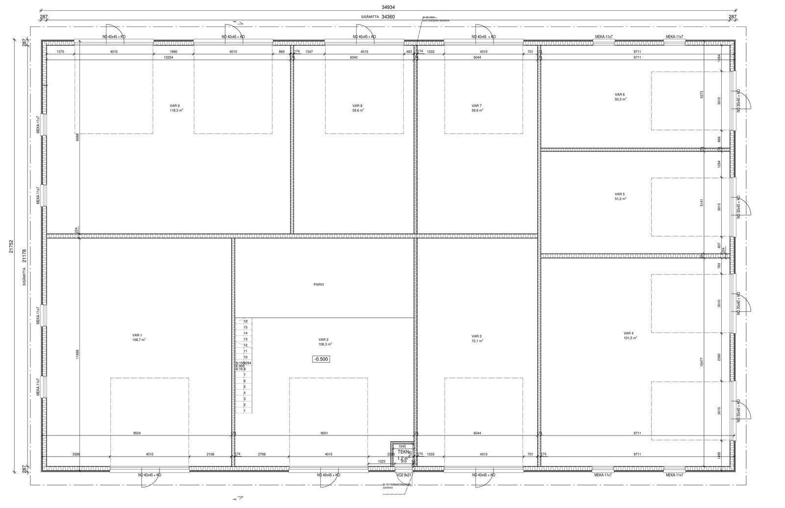 Varastoja 9 kpl, yhteensä 722 m². Lisäksi tekninen tila. |